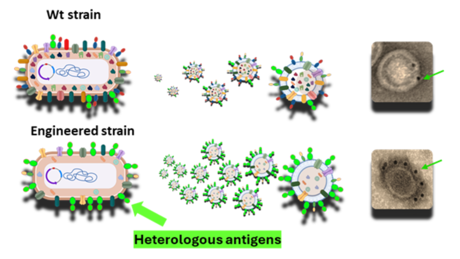 Through genetic engineering, OMVs can also be designed to display specific antigens on their surface, effectively combining immune activation and antigen delivery in a single, ready-to-use system.